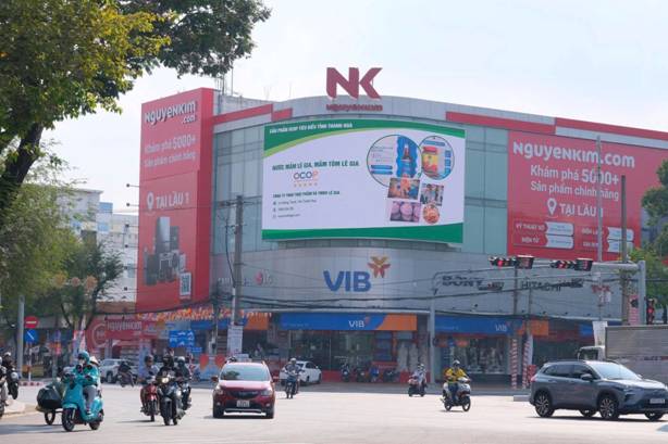 Sản phẩm OCOP tỉnh Thanh Hóa được quảng bá trên màn hình điện tử cỡ lớn tại tòa nhà Trung tâm thương mại Nguyễn Kim thành phố Cần Thơ.